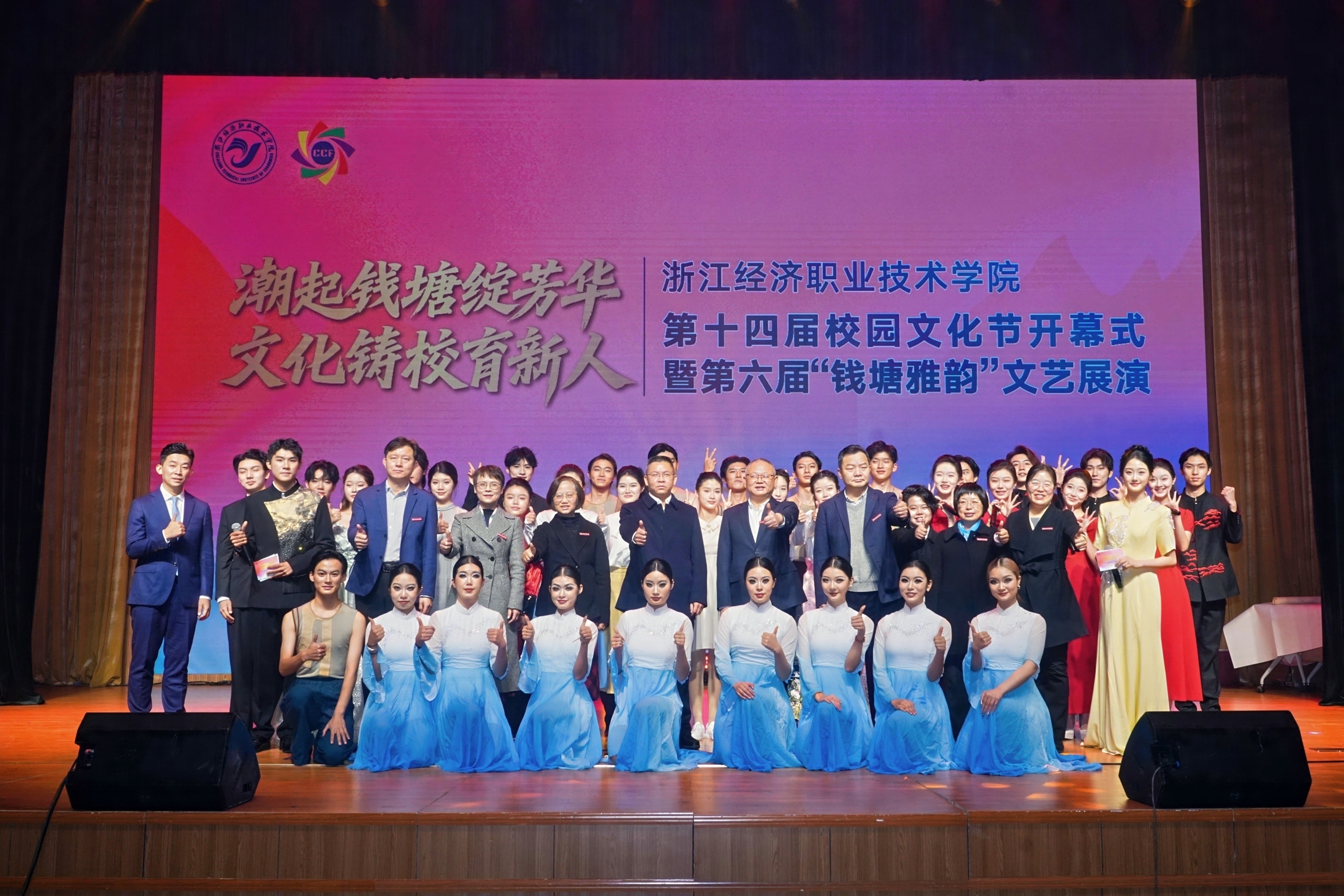 潮起钱塘绽芳华 文化铸校育新人 学校举行第十四届校园文化节开幕式暨第六届“钱塘雅韵”文艺展演 为深入学习贯彻党的二十届四中全会精神和省委十五届八次全会精神,开展富有新时代职教特色、有浙经院辨识度的校园文化活动,12月9日,学校第十四届校园文化节开幕式暨第六届“钱塘雅韵”文艺展演在培训大楼二楼报告厅隆重举行。学校校长、党委副书记柯孔林,党委领导班子成员,中层领导人员,全体辅导员,受表彰师生,全体...