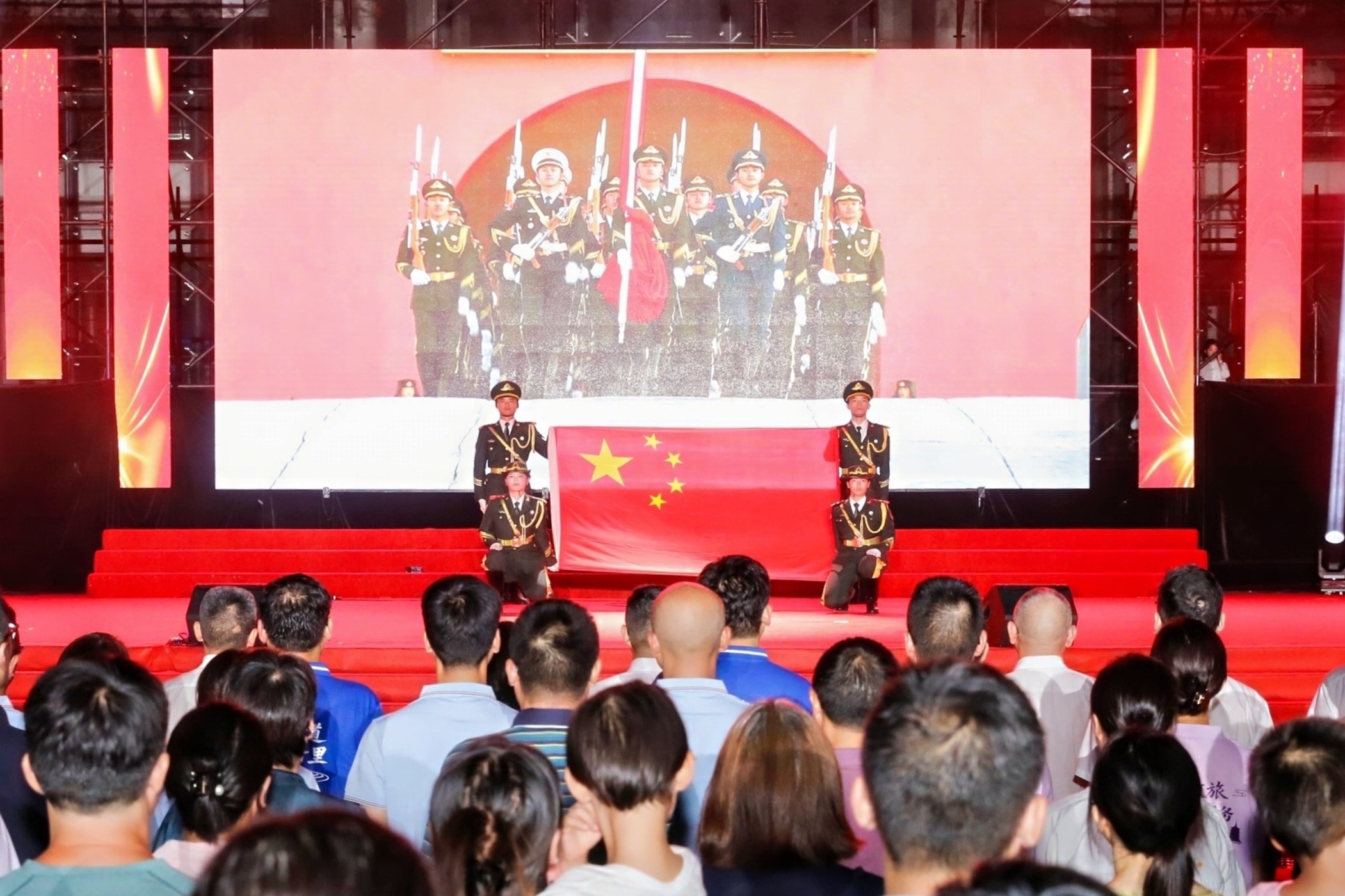 学校国旗护卫队出旗,全体师生齐唱国歌。