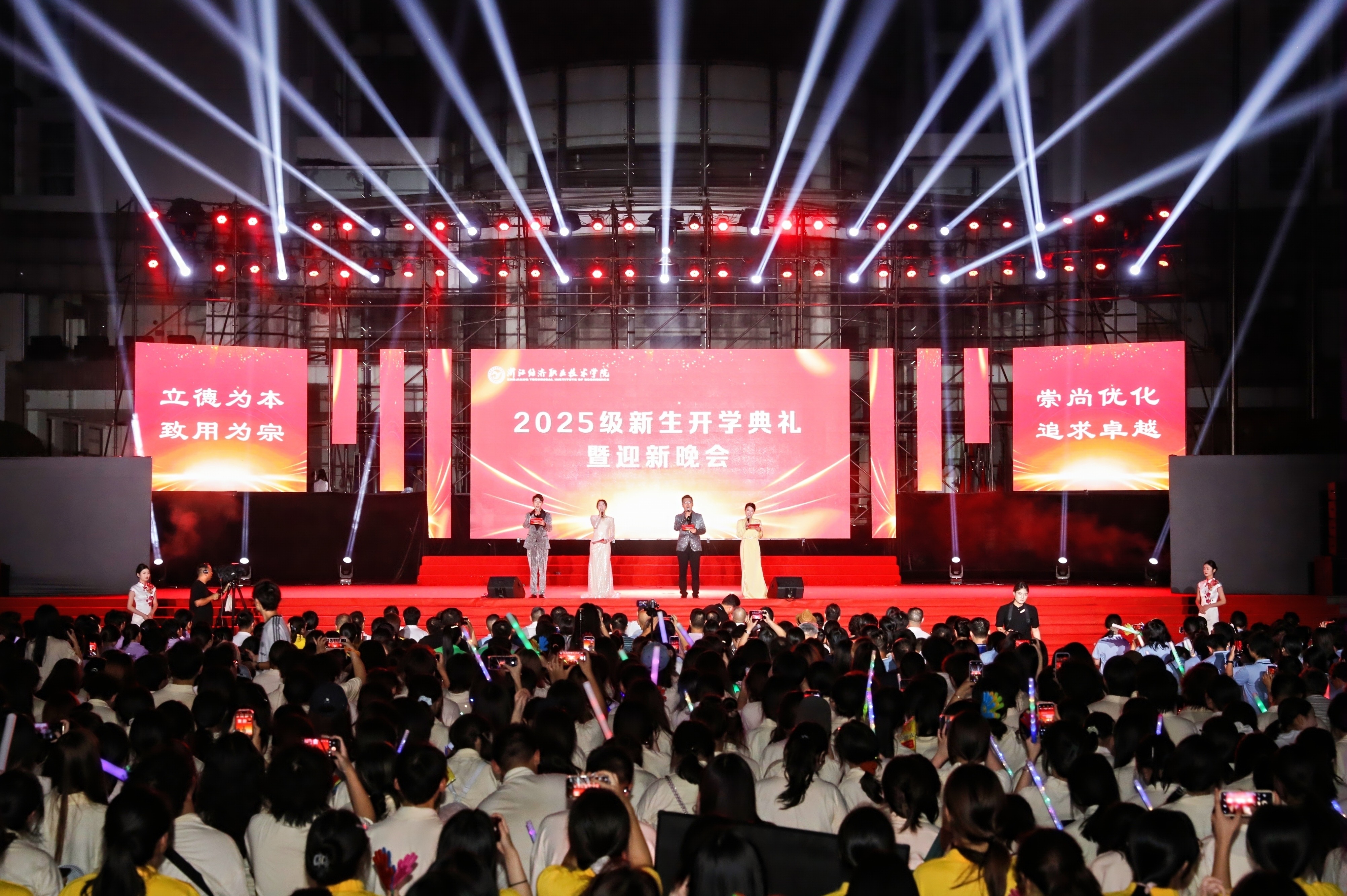 9月28日晚,学校2025级新生开学典礼暨迎新晚会在至善中心广场隆重举行。学校党委书记叶伟江,校长、党委副书记柯孔林及党委班子成员,各职能部门和二级学院负责人,辅导员、新生班主任及2025级全体同学参加开学典礼。