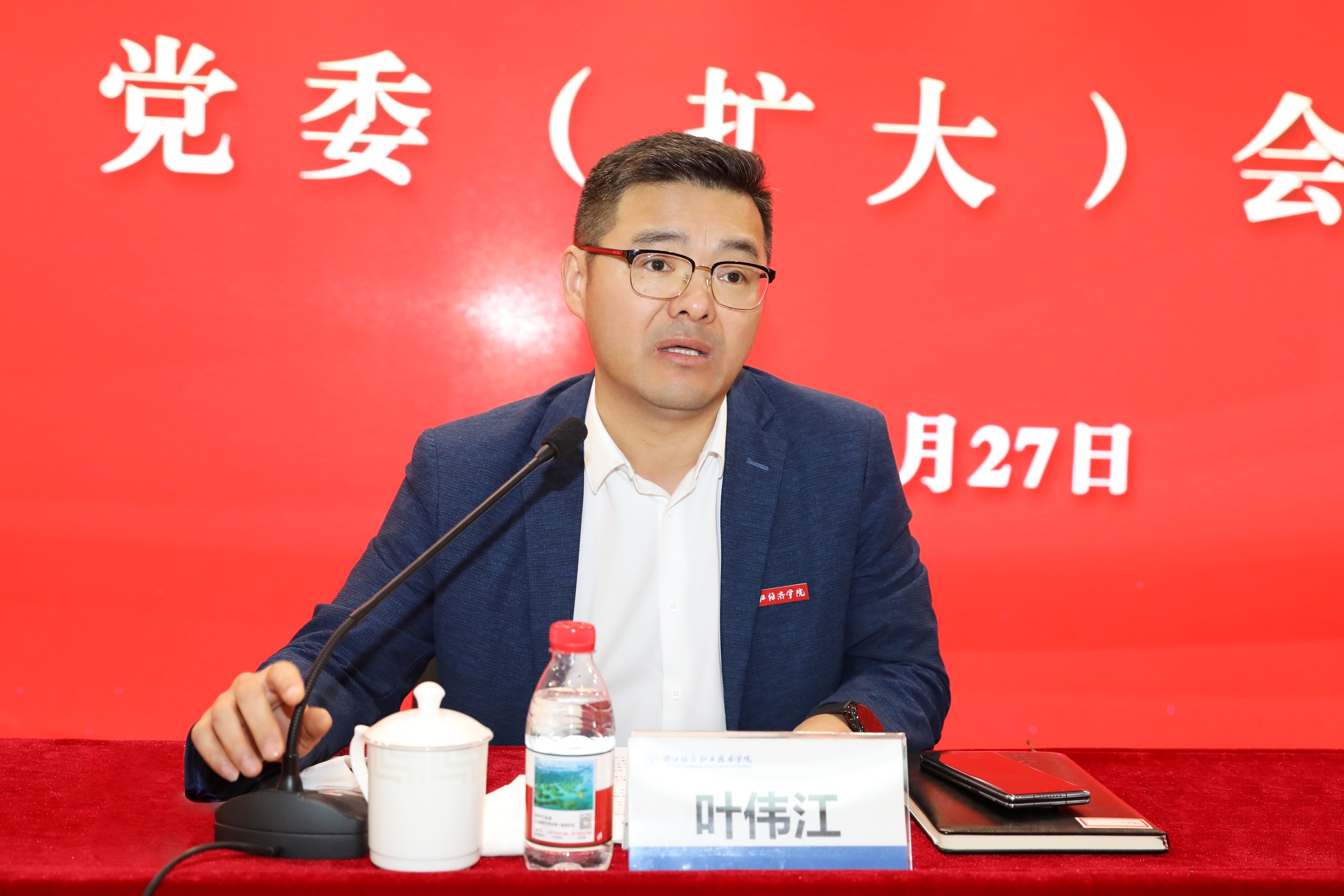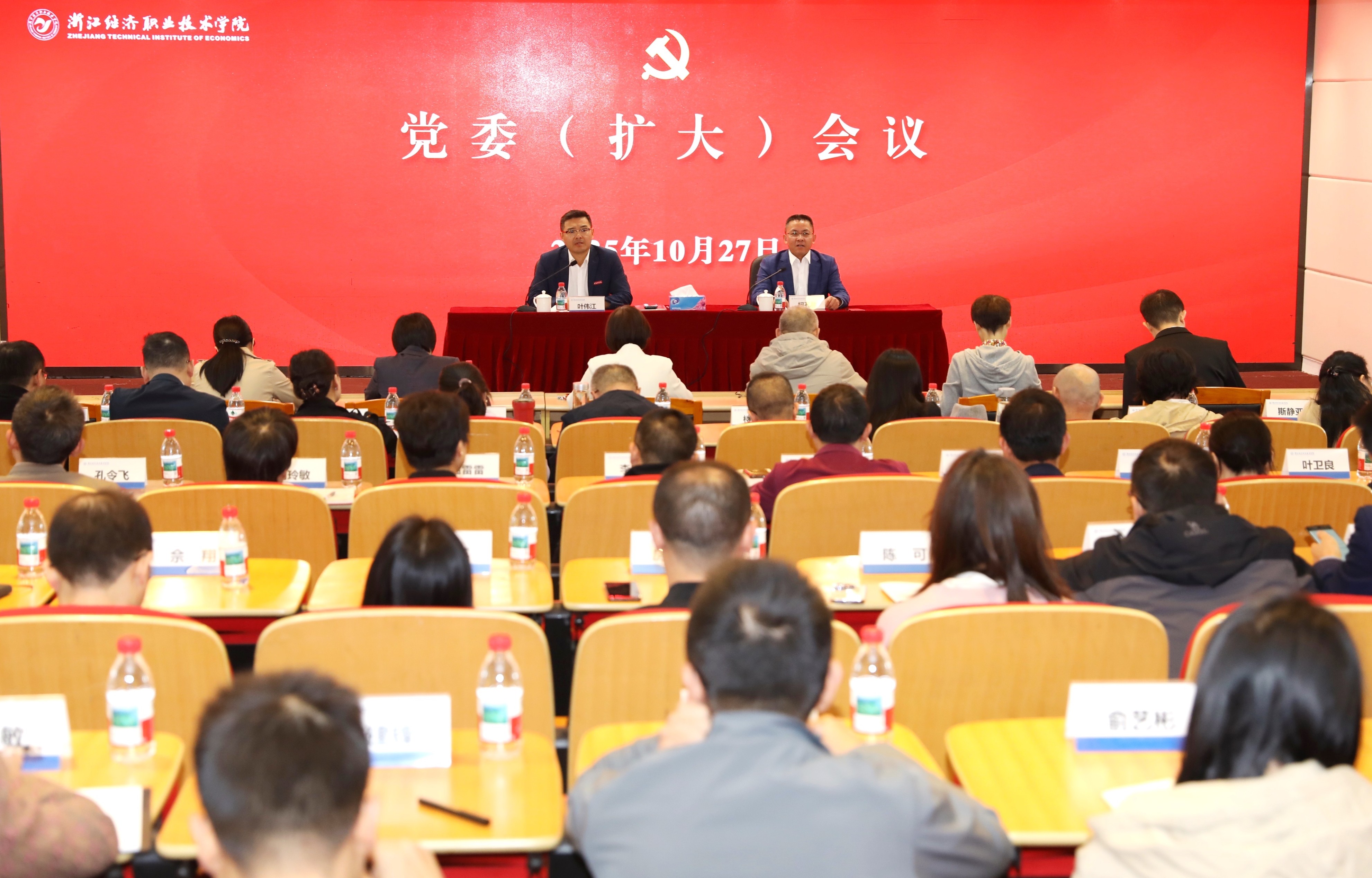 10月27日上午,学校召开党委(扩大)会议,传达学习党的二十届四中全会精神和省委常委(扩大)会议精神,并结合学校实际初步研究贯彻落实意见。学校党委书记叶伟江主持会议并讲话,校长、党委副书记柯孔林传达领学党的二十届四中全会精神,党委班子成员及全体中层干部参加会议。