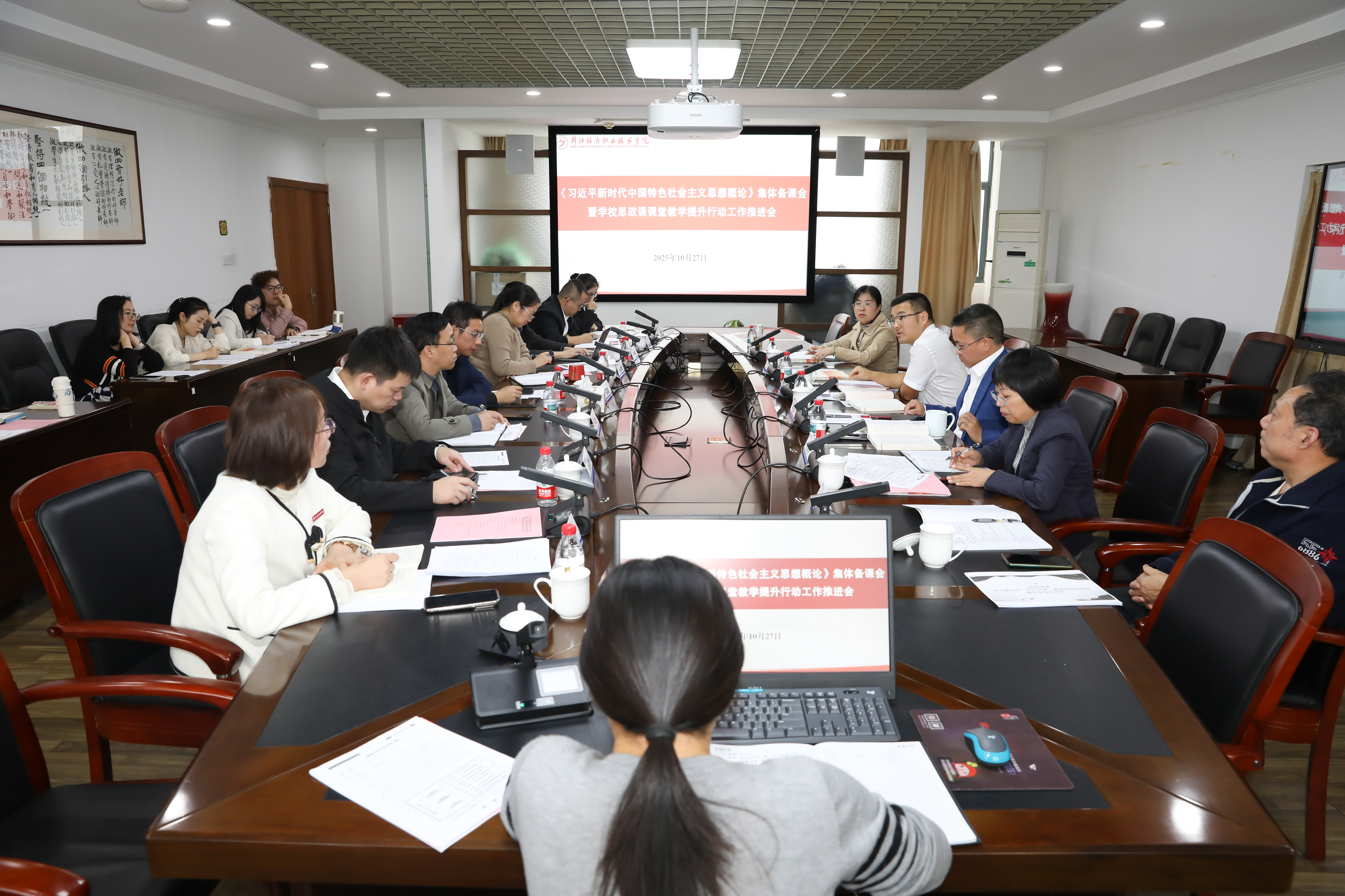 10月27日下午,学校在崇学楼七楼会议室举行《习近平新时代中国特色社会主义思想概论》集体备课会暨学校思政课课堂教学提升行动工作推进会。党委书记叶伟江,党委副书记、校长柯孔林,党委副书记、工会主席吕红刚,党委委员、副校长王春青,党委委员、宣传统战部部长兼马克思主义学院党总支书记张妮佳,相关职能部门负责人、教学督导代表、马克思主义学院班子和全体教师参加。