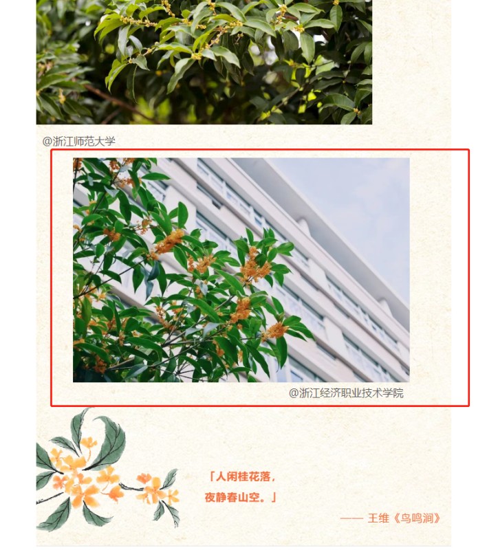 近日,教育之江报道浙江校园桂花美景,我校桂花照片入选。