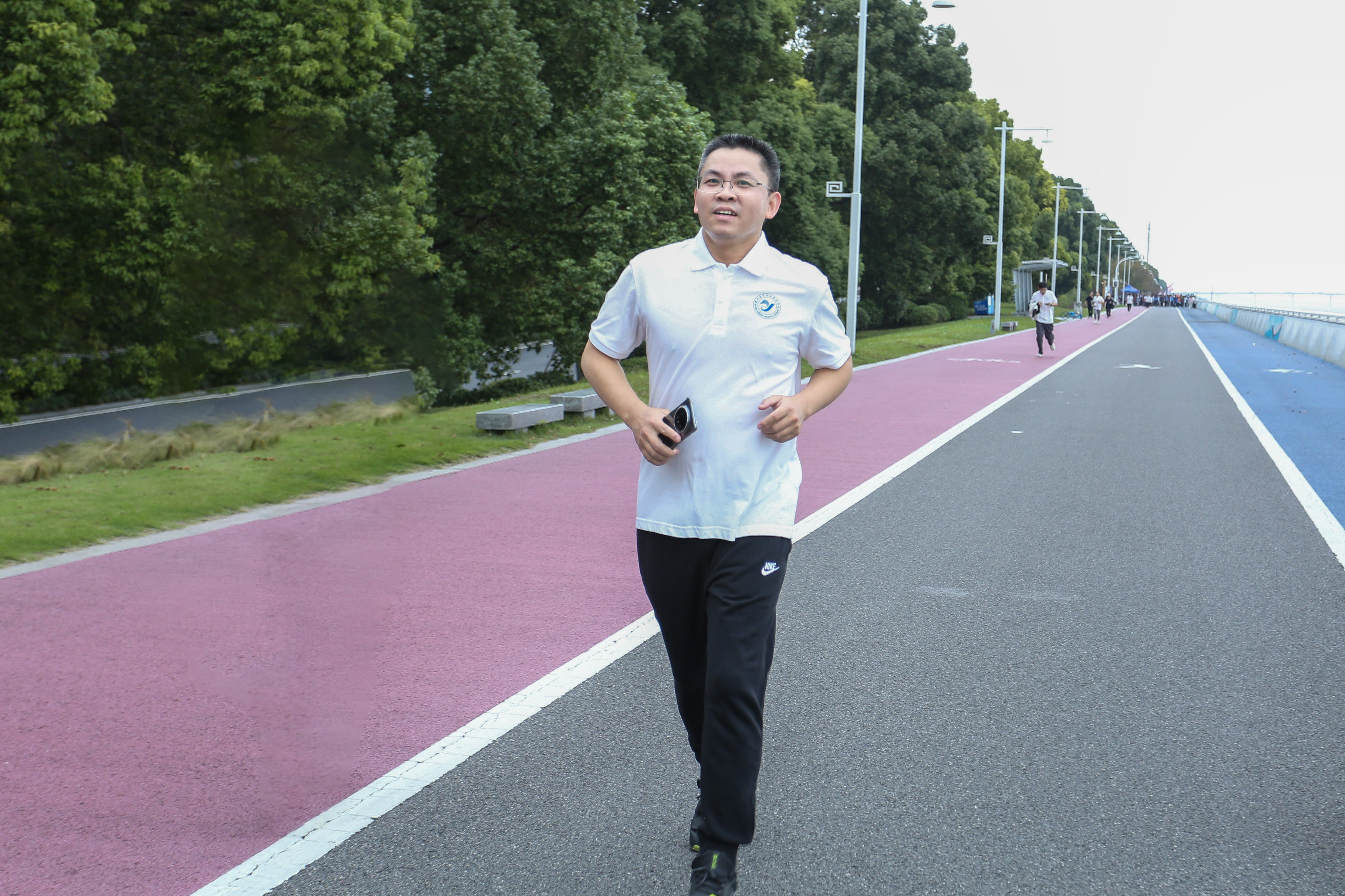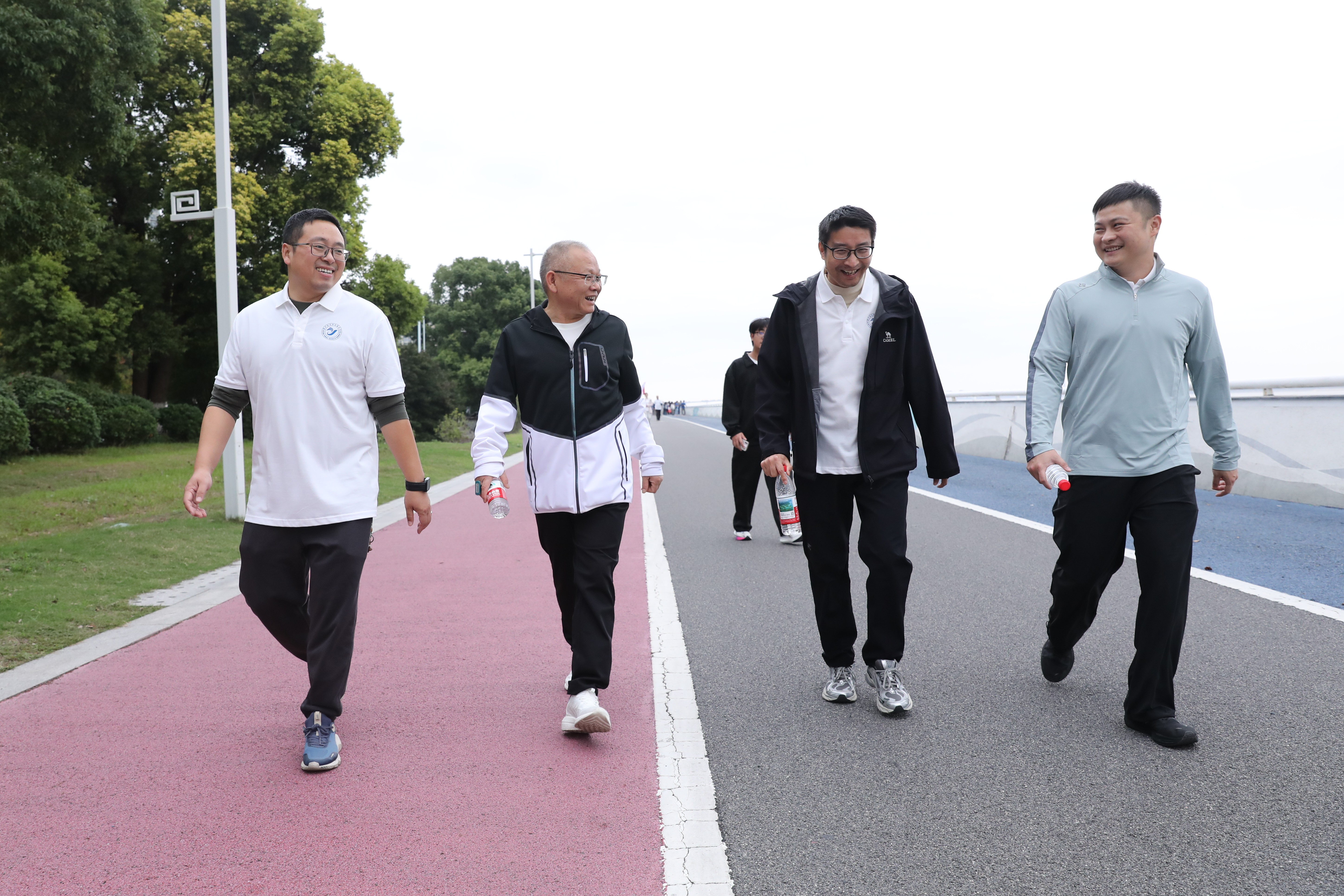 吕红刚宣布活动开始,教职工们精神抖擞地沿江而行,在秋日美景中畅享运动乐趣,在欢声笑语中增进情谊,展现出“经院人”团结协作、积极向上的良好风貌。