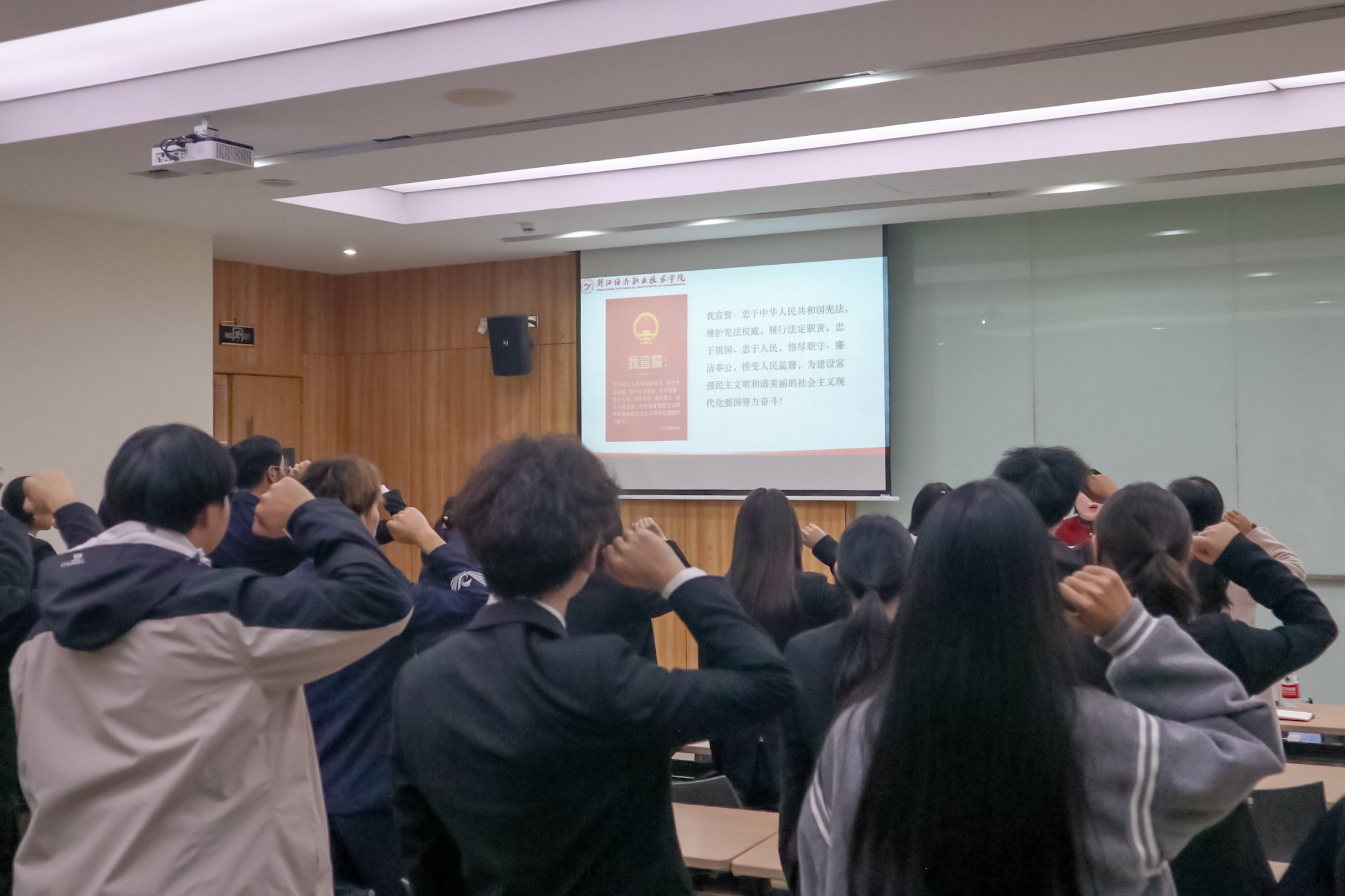 现场进行了宪法宣誓仪式环节,全体师生齐声跟诵,铮铮誓词在教室内久久回荡。