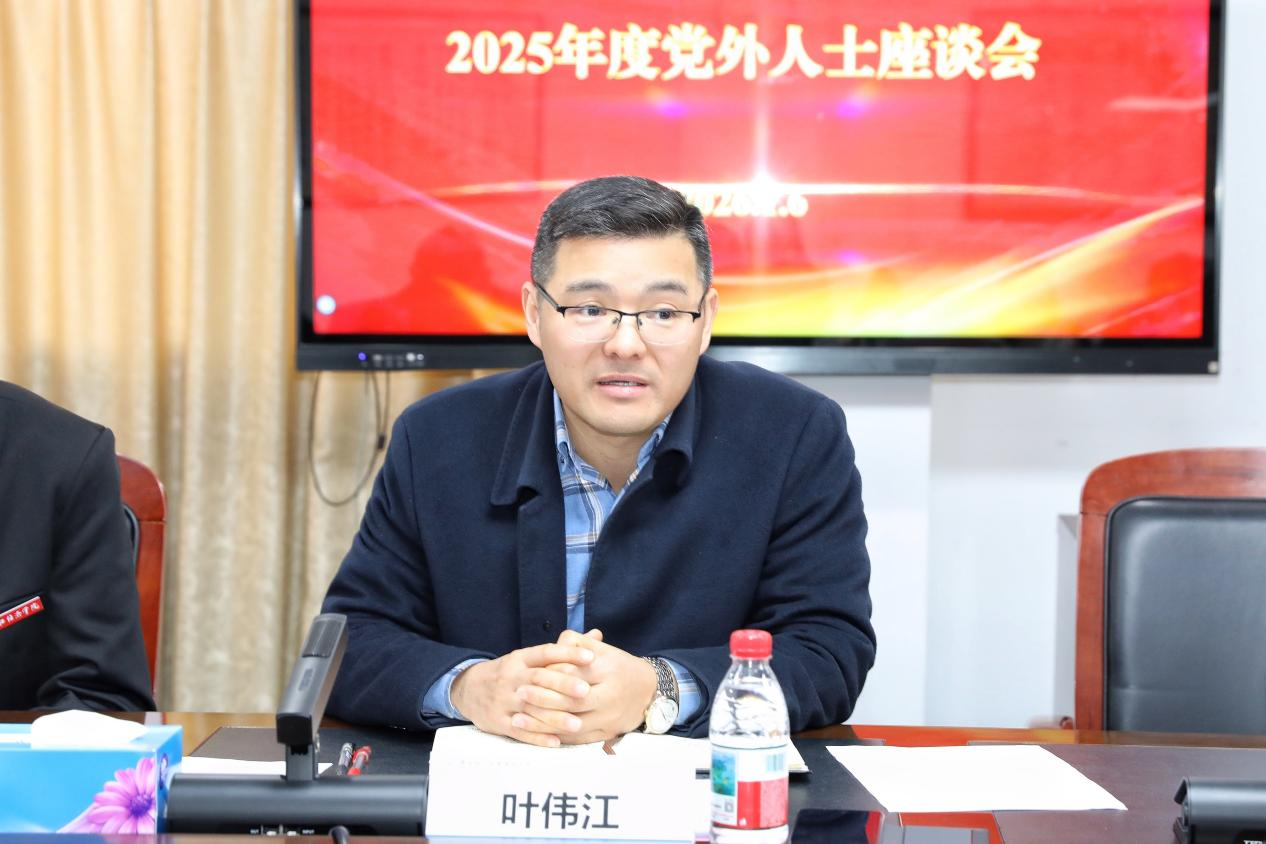 为深入学习贯彻党的二十届四中全会精神,深刻领会习近平总书记关于做好新时代党的统一战线工作的重要思想,充分发挥统一战线作用,1月6日,学校召开2025年党外人士座谈会。学校党委书记叶伟江出席并讲话,党委副书记、工会主席吕红刚,党委委员、组织部(人才办)部长(主任)叶林良,党委委员、宣传统战部部长张妮佳,相关职能部门负责人,民主党派、无党派人士代表参加座谈。