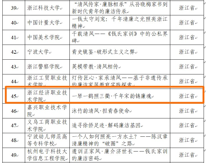 4月3日,教育部办公厅下发《关于公布第十届高校廉洁教育系列活动结果的通知》(教思政厅函〔2026〕5号),公布第十届高校廉洁教育系列活动优秀作品遴选结果。学校数字商贸学院教师团队(吴哲萍、周美华、房栋)创作的作品《一琴一鹤照三衢·千年宋韵铸廉魂》脱颖而出,成功获评“青廉说”廉洁微网课优秀作品(该类别全国优秀作品入选100件,其中浙江省入选11件)。