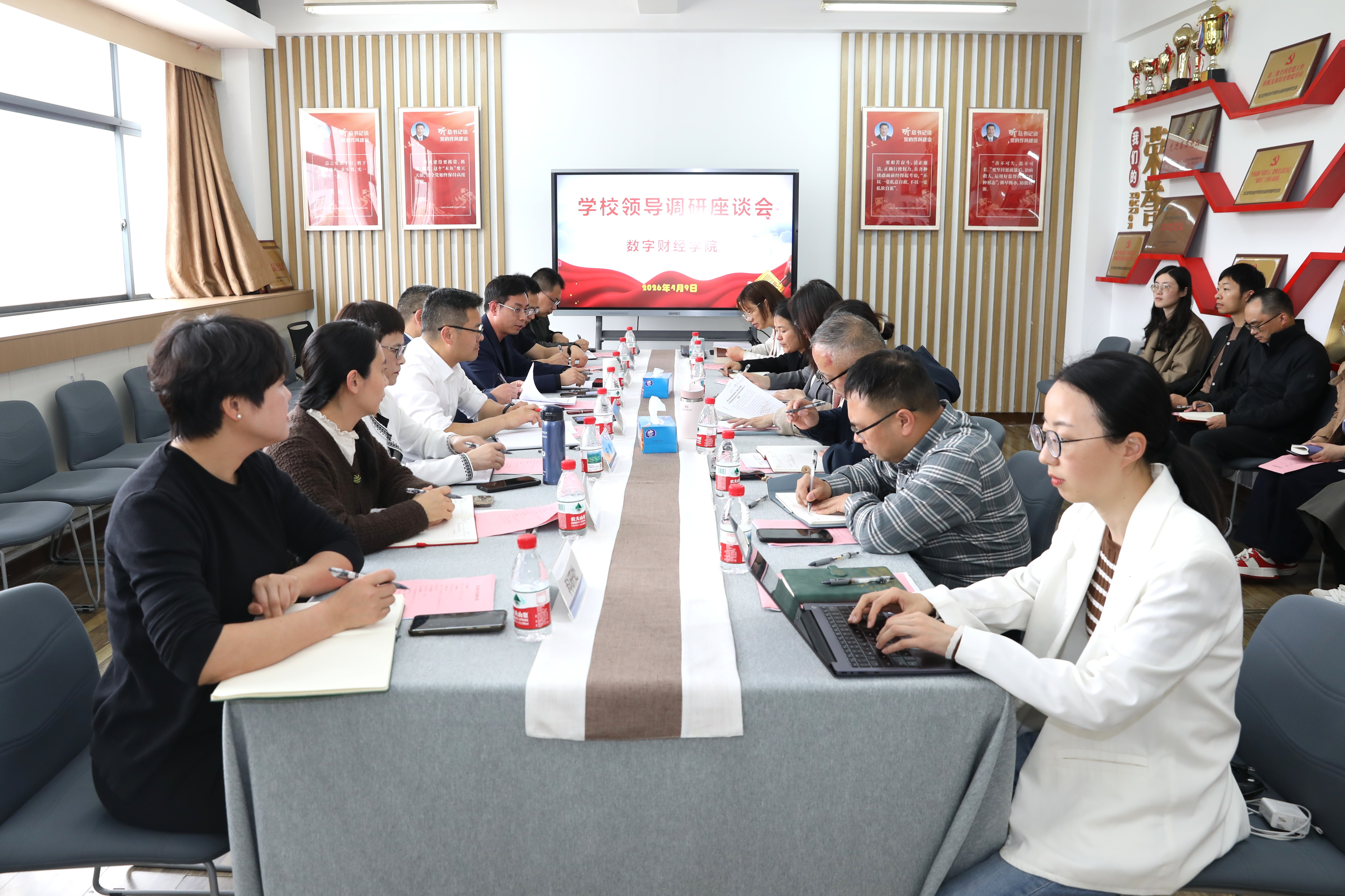 4月9日,学校党委书记叶伟江、校长柯孔林带队赴数字财经学院开展调研工作。数字财经学院联系校领导陈专,学院党政领导班子成员、专业带头人、骨干教师代表,相关职能部门负责人等参加调研座谈。