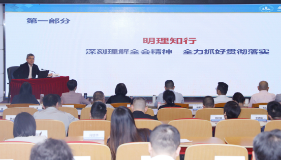 朱爱胜从“明理知行”的角度,论述了深刻理解党的二十届四中全会精神,全力抓好贯彻落实的五点要求;从“领航定向”的角度,指出通过坚持政治统领、坚持思想引领、坚持发展战略、坚持立德树人、坚持文化涵育,加强党对高校的全面领导;从“赋能发展”的角度,提出聚焦建强基层堡垒、聚焦选优配强干部、聚焦作用发挥、聚焦党建“第一责任”、聚焦凝聚统战力量,打造学校高质量发展引擎。